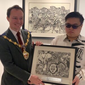 Delwin Cheah held his first international solo art exhibition in Kensington, London. The event was officiated by the High Commissioner of Malaysia to the United Kingdom, Dato’ Zakri Jaafar, along with the Mayor of Kensington and Chelsea, Mr. Tom Bennette, on 16 October 2025.